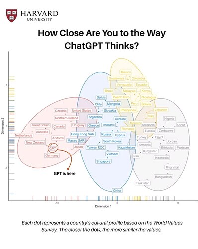 - AI models like ChatGPT, which are trained by analysing the Internet (especially a predefined 44TB text dataset), mostly reflect this Western mindset, showing a strong Anglo-Saxon cultural bias: they think, evaluate and respond more like Americans or Northern Europeans than people from other cultures.